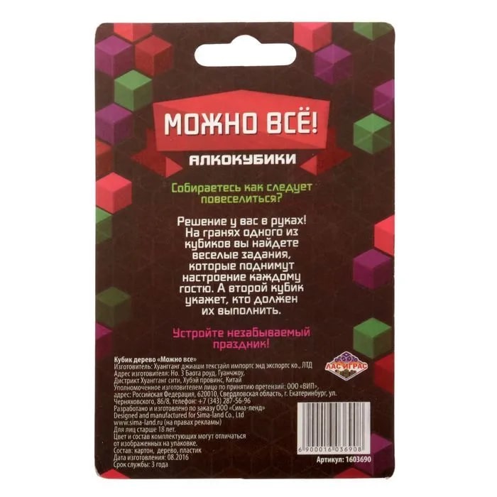 Купить кубик "можно все", алкокубики для принятия решений от 60 руб. с доставкой до пункта выдачи в Искитиме. Интернет магазин ДекаМаркет. Оплата при получении.