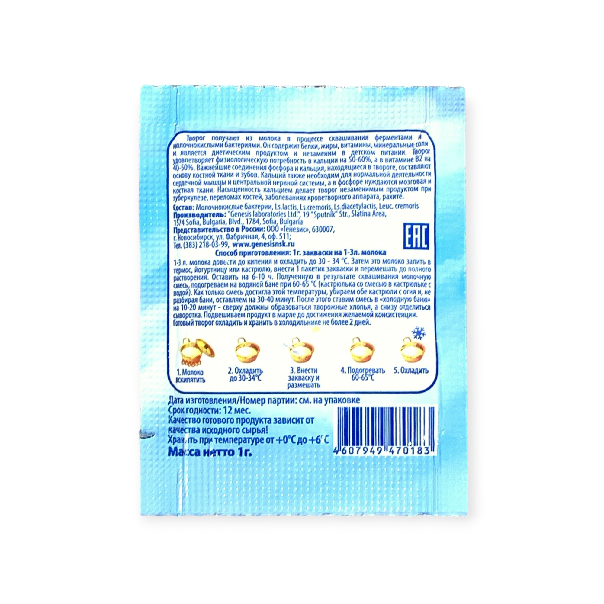 Закваска Творожок Genesis, 1 пакет от 100 руб. с доставкой. Пункт выдачи в Искитиме. Интернет магазин по сыроделию. Всё всегда в наличии.